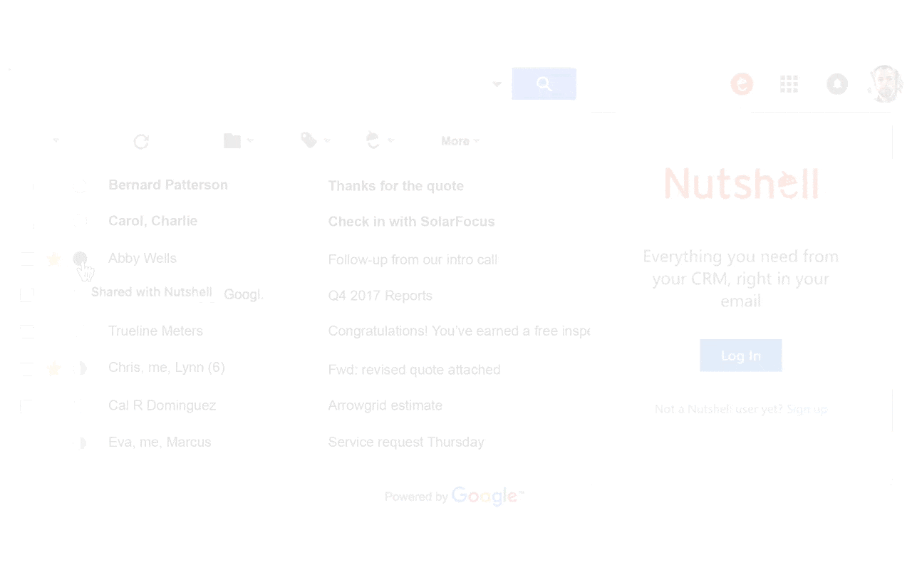 Nutshell was the first CRM to enter the G Suite Marketplace when we released our popular Google gadget, allowing users to view their contacts in Gmail, create new contacts, save emails to Nutshell, sync their calendar activities, and more.