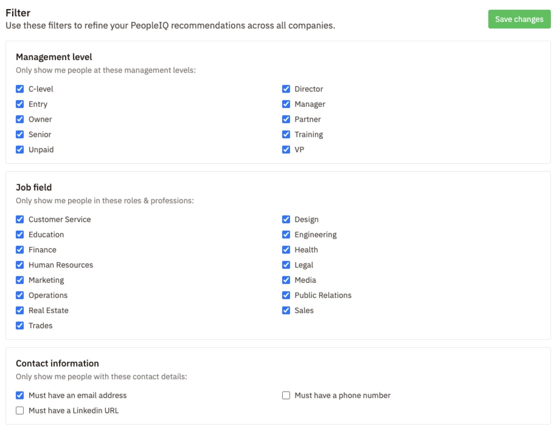 • PeopleIQ: Discover the contact information of people you don’t know about who work for companies you do.