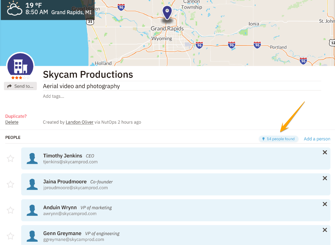 Need to reach a company you already have in Nutshell, but don’t know who to reach out to? PeopleIQ offers a list of targeted contacts working at your businesses in Nutshell so you can identify the right person for your message.