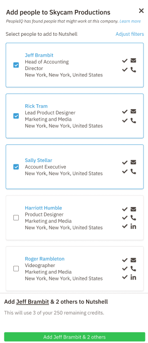 As part of the Nutshell IQ add-on, PeopleIQ is part of your larger strategy to discover and add more high-value opportunities to Nutshell. Discover the rest of the Nutshell IQ toolkit.
