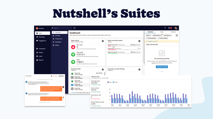 Nutshell’s powerful features are now organized into three Suites to help your team simplify workflows, collaborate more effectively, and squeeze all the power out of your valuable CRM data.